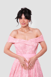 Isla Coral Pink Jacquard With Gold Floral Patterns Strapless Maxi Dress