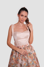 Felicity Serenade Nude With Multicolored Floral Patterns Silk Organza Maxi Dress