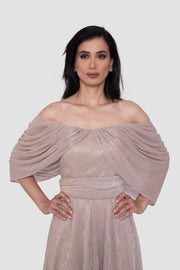 Noora Metallic Off-Shoulder With Pleated Draped Sleeves Maxi Dress