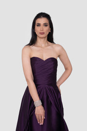 Vivienna Strapless Ruched Gown In Deep Plum Taffeta