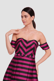Emily Fuchsia And Black Striped Off-shoulder High-low Maxi Dress