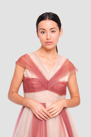 Mia Cap-sleeve V-neckline Maxi Dress With Striking Multi-tonal Tulle Layers