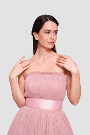 Lola Blush Pink Metallic Fabric And Tulle Corset Maxi Dress