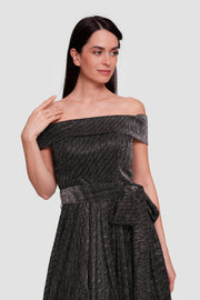 Kim Black And Silver Accents Off-shoulder Corset Maxi Dress
