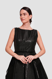 Joy Black Metallic Organza Sweetheart Neckline Maxi Dress