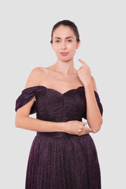 Grace Black Metallic Pleated Tissue Off-shoulder Gown